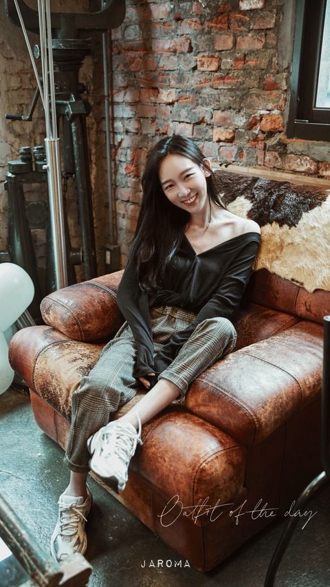 修身格紋休閒鬆緊褲 (美腿必備!!!